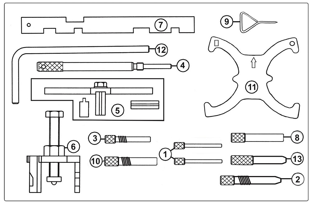 Набор фиксаторов коленвала и распредвала (FORD, MAZDA) в кейсе