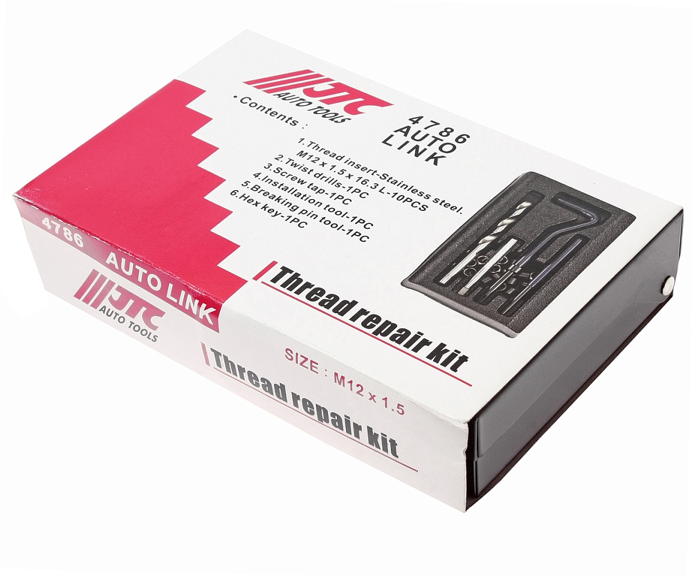 JTC-4786 Набор для восстановления резьбы (вставки M12x1.5, длина 16.3мм, 10шт) 14 предметов JTC /1