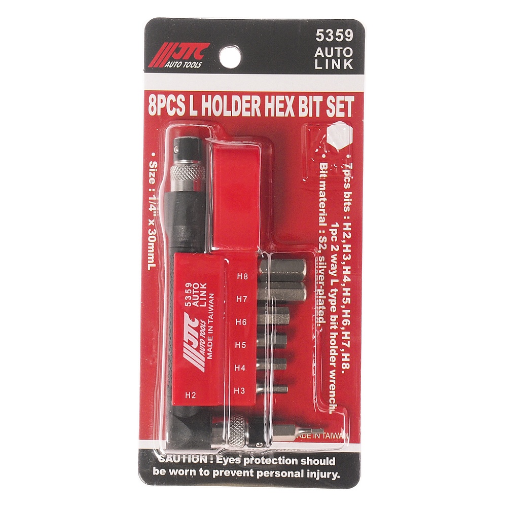 JTC-5359 Набор вставок 1/4"DR 6-гранных HEX 2,3,4,5,6,7,8, с Г-образным держателем 8пр. JTC