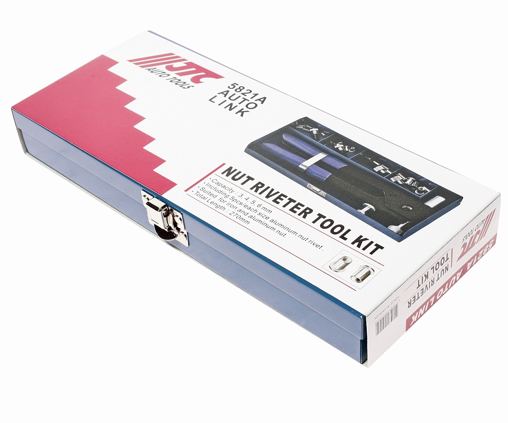 JTC-5821A Заклепочник ручной резьбовой с заклепками в комплекте 3; 4; 5; 6мм, общая длина 270мм (в кейсе), , ш купить в Красноярске цена ✅ - Все для СТО