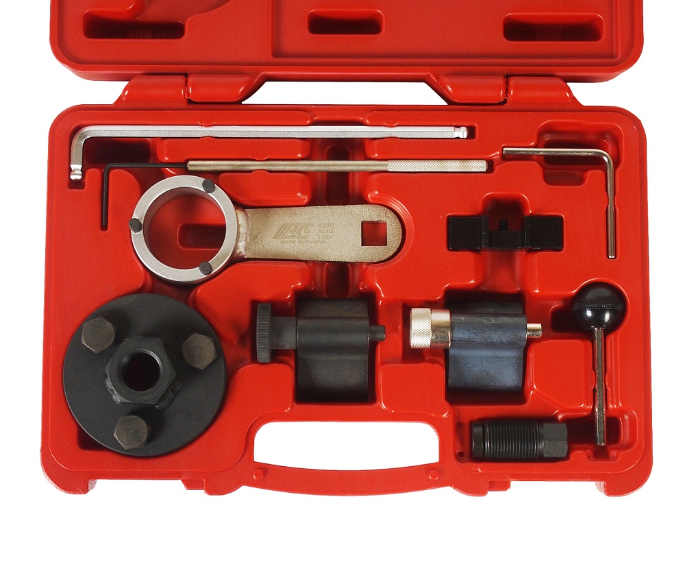 Специальный набор инструментов применяется для фиксации распредвала и установки фаз ГРМ на а/м: