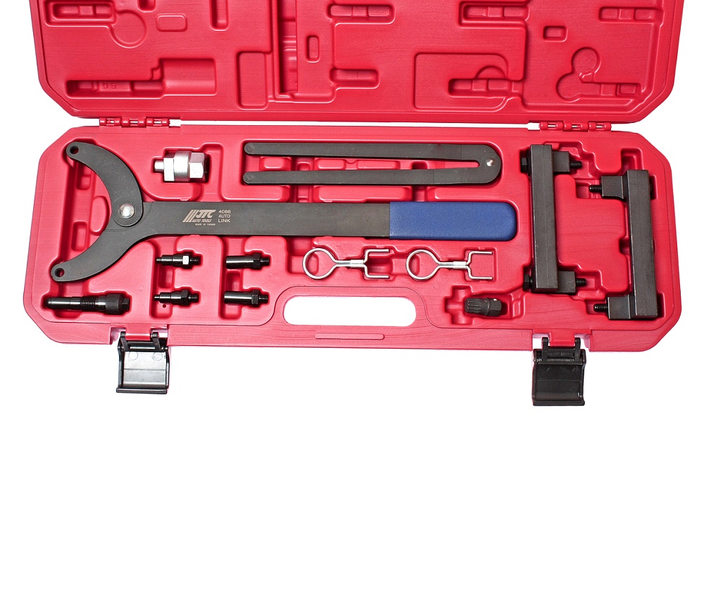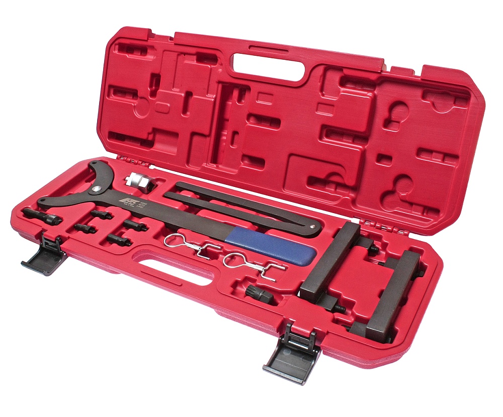 Специальный набор инструментов применяется для фиксации распределительного вала и установки фаз ГРМ.