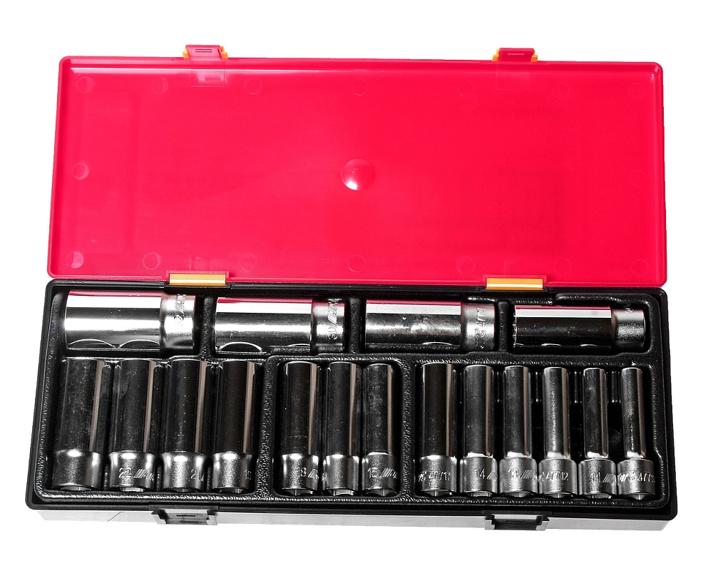 Набор головок торцевых 1/2" 12-ти гранных 10-32мм глубоких в кейсе 17 предметов JTC