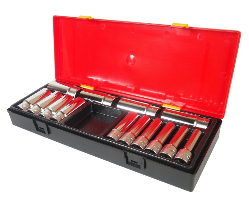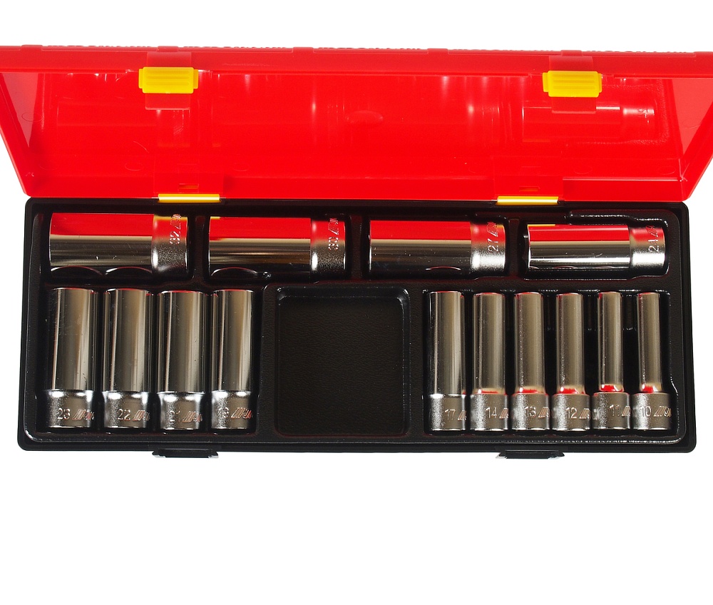 Набор головок торцевых 1/2" 6-ти гранных 10-32мм глубоких в кейсе 14 предметов JTC