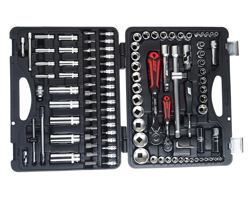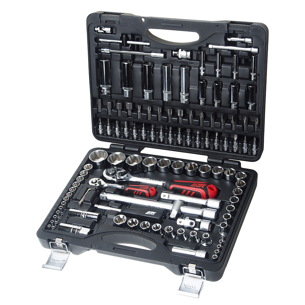 Набор головок торцевых и вставок 1/4",1/2" 6-гранных для поврежденных гаек 110 предметов в кейсе JTC