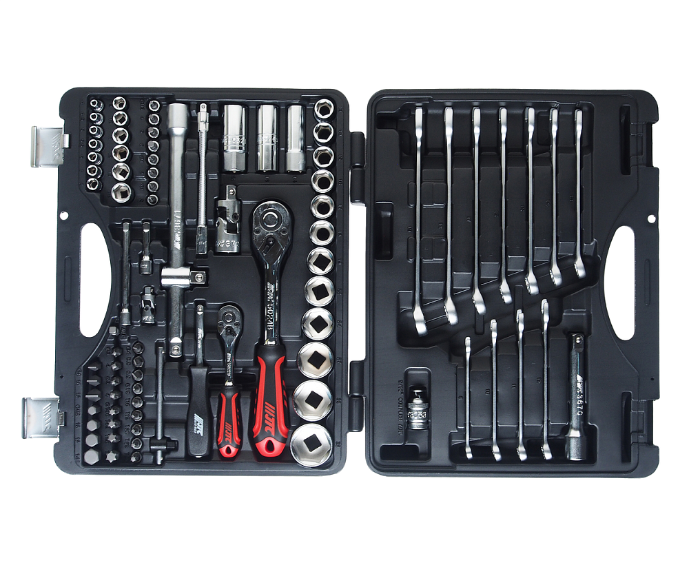 Набор 6-гранных инструментов 1/4" & 1/2" в кейсе, 85шт JTC JTC-H085C-B72 включает в себя все необходимые инструменты и приспособления для ремонта и обслуживания промышленного оборудования, автомобильного транспорта, мототехники и мн. др. Все компоненты изготовлены из качественных материалов, имеют повышенный рабочий ресурс. Для удобства хранения и переноски изделий без риска утери мелких компонентов предусмотрен прочный, закрывающийся кейс.