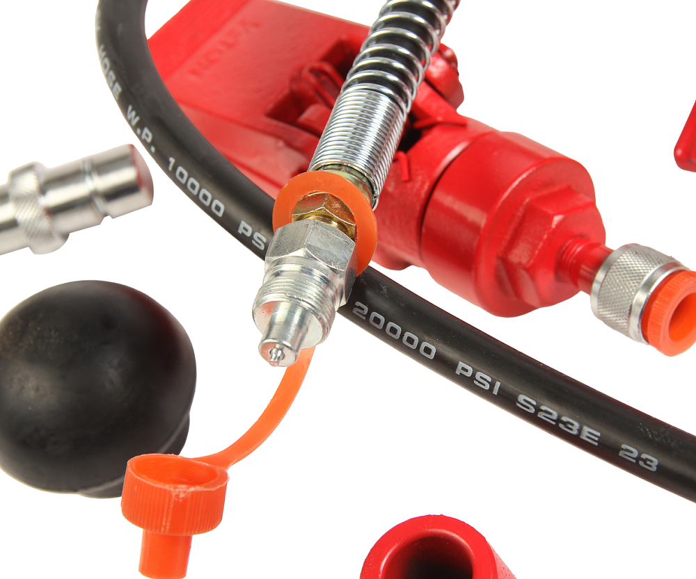 Набор гидравлического инструмента представляет собой компактный и удобный в эксплуатации комплект из гидравлического насоса (1) и гидравлического цилиндра (3), с помощью которых создается рабочее усилие; удлинителей для упрощения работы (5-8); специальных фигурных соединяющих насадок (11-16), для надежного упора в детали кузова.