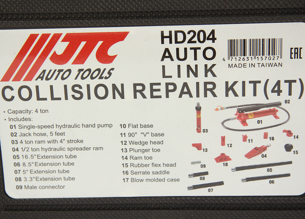 Набор инструментов для кузовных работ гидравлический, усилие 4т, 17 предметов в кейсе JTC купить в Красноярске цена ✅ - Все для СТО