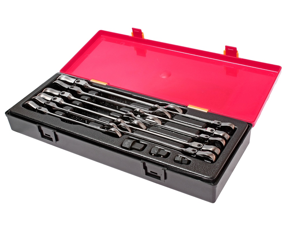Артикулы JTC-3449-3459: ключ рожково-накидной (шарнирный с трещоткой) 8 мм, 10 мм, 11 мм, 12 мм, 13 мм, 14 мм, 15 мм, 16 мм, 17 мм, 18 мм, 19 мм - 11 шт.