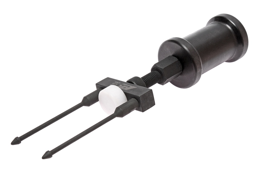 Специальная конструкция инструмента с двумя захватами предназначена для демонтажа форсунок с помощью ударного съемника.
