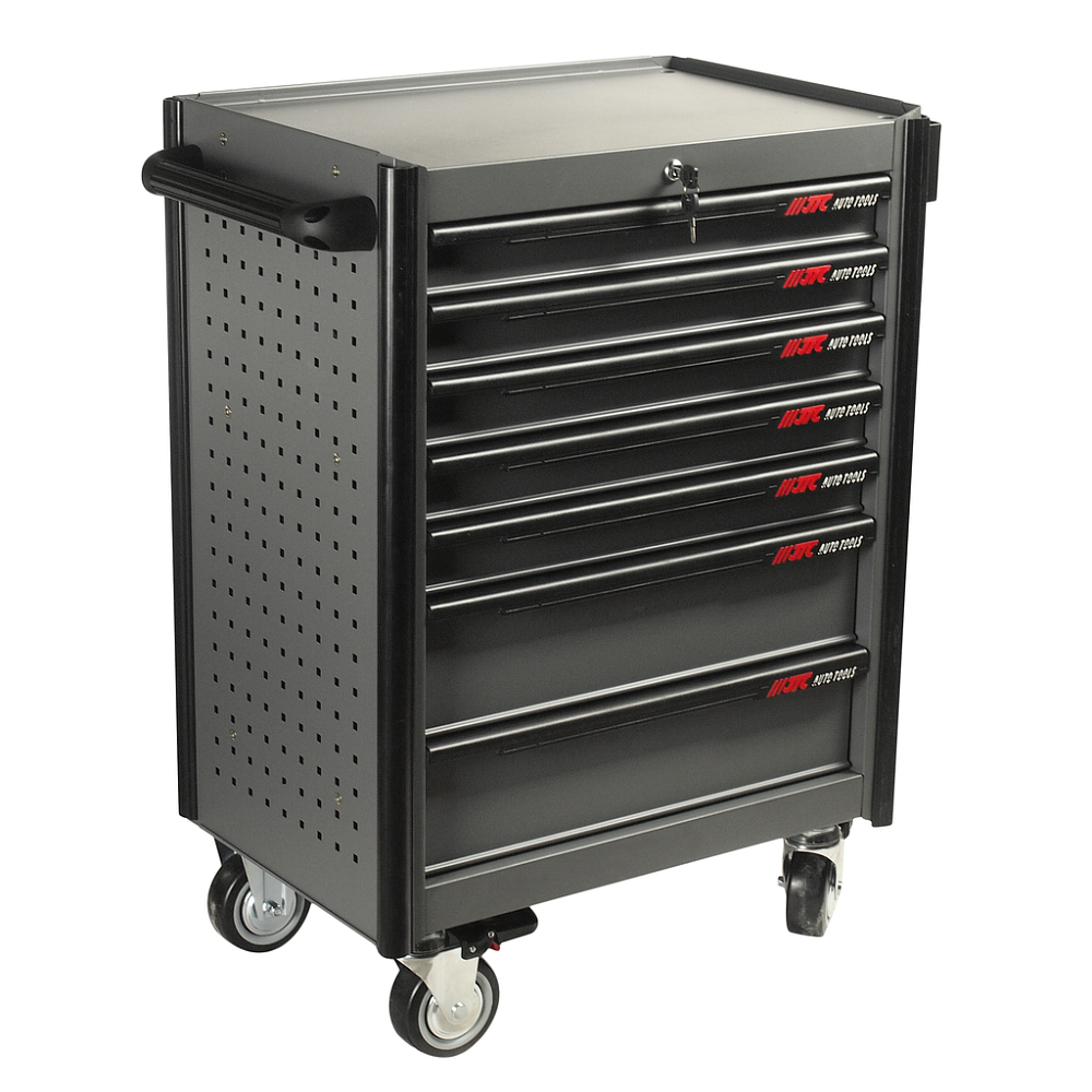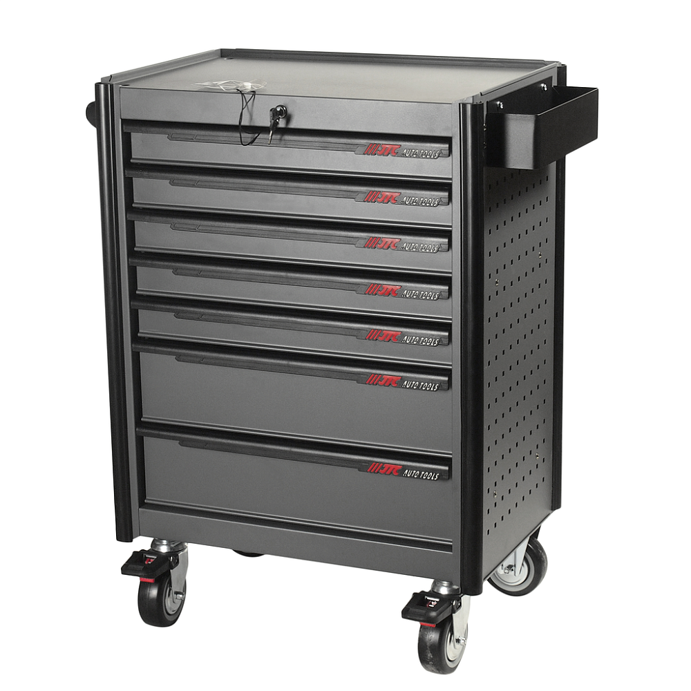 Перфорированные боковые стенки с квадратными отверстиями предоставляют возможность разместить дополнительные аксессуары для хранения инструментов. Применяется с серией подвесных приспособлений JTC-3218.