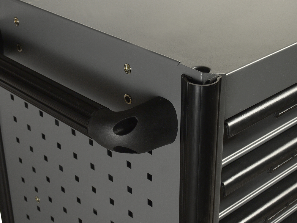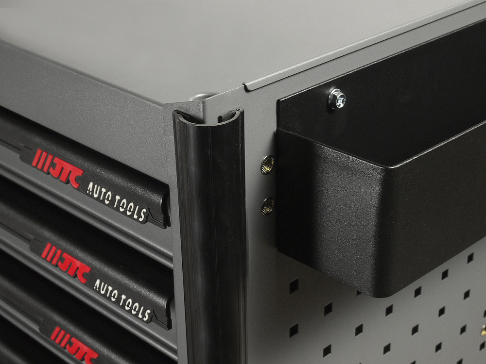• Перфорированные боковые стенки с квадратными отверстиями предоставляют возможность разместить дополнительные аксессуары для хранения инструментов. Применяется с серией подвесных приспособлений JTC-3218.