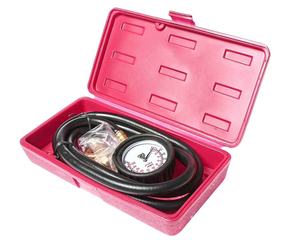Тестер давления масла в двигателе предназначен для проведения работ по диагностике давления масла в любом типе автомобилей. Оснащён двойной заметной шкалой + шланг 600 мм с резьбой (NPT) 1/8'' + адаптеры 1/4'' NPT + 3/8 NPT. Диапазон измерений: 0-300 psi (0-21 бар). <br>