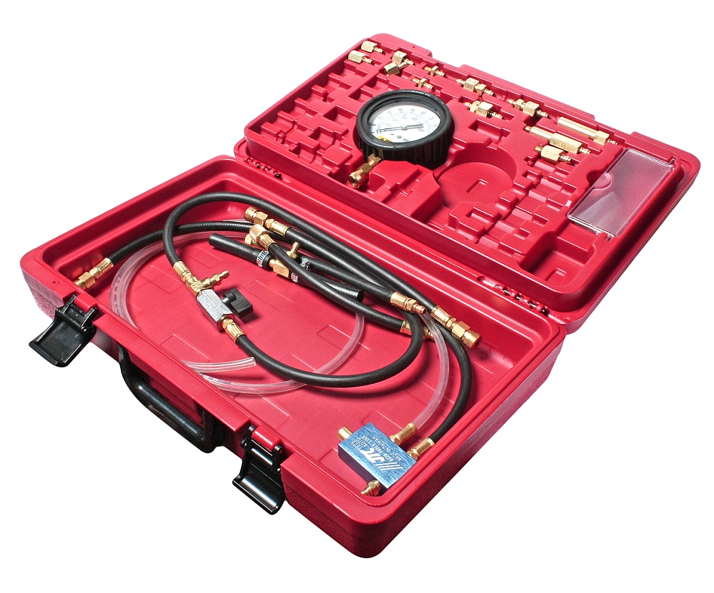 Комплект для проверки топливных систем позволяет диагностировать инжекторные системы на транспортных средствах большинства производителей и моделей.