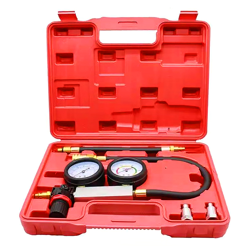 Тестер утечек в цилиндре Представляет собой специальное приспособление с двумя манометрами при помощи которого можно выявить целый ряд таки неисправностей как, плотность прилегания клапанов, целостность прокладки головки блока цилиндров, выявить трещины в стенках цилиндров, проверить плотность прилегания поршневых колец двигателе внутреннего сгорания.