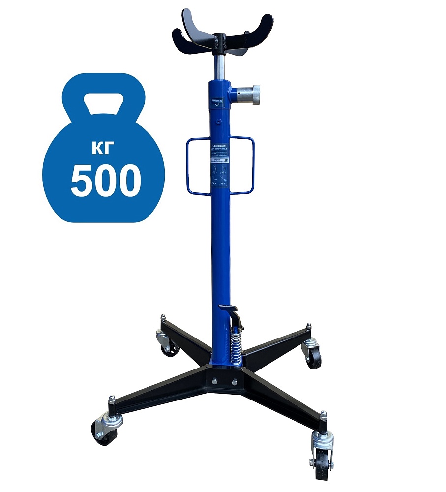 Стойка трансмиссионная гидравлическая г/п 500кг. Подъём 1180-1980мм. Стойка используется при монтаже и демонтаже узлов трансмиссий, КПП, тормозных суппортов и других агрегатов автомобиля, установленного на смотровой яме, эстакаде или подъемнике для ремонта или технического обслуживания. Трансмиссионная гидравлическая стойка является мобильным подъемным устройством. С ее помощью можно поднять и переместить снятый узел. Доставка РФ, РБ, Армения, Казахстан, Киргизия. <br /><br />Особенности конструкции стойка трансмиссионная гидравлическая 500 кг: <p></p><br />·         Один гидравлический цилиндр с клапанным блоком и возвратной пружиной. <br />·         4 колеса стойки выполнены из металла, а не из пластика, что значительно увеличивает срок эксплуатации. <br />·         Педаль подъема стойки выполнена из металла с ребрами жесткости для предотвращения скольжения. <br />·         Качественные уплотнительные манжеты гидравлической системы - не текут. <br />·         Качественные штуцеры гидравлической системы. Высокая герметичность – не течет. <br />·         Высокая чистота обработки внутренних поверхностей гидравлического цилиндра, приводит к увеличению срока службы стойки. <br />·         Оборудована двумя металлическими ручками для удобства транспортировки по цеху. <br />·         Стойка оборудована отверстием с заглушкой для заливки масла. гидравлическое масло. Емкость 1,5л.<br />·         Сертифицирована для продажи в России и ЕС.