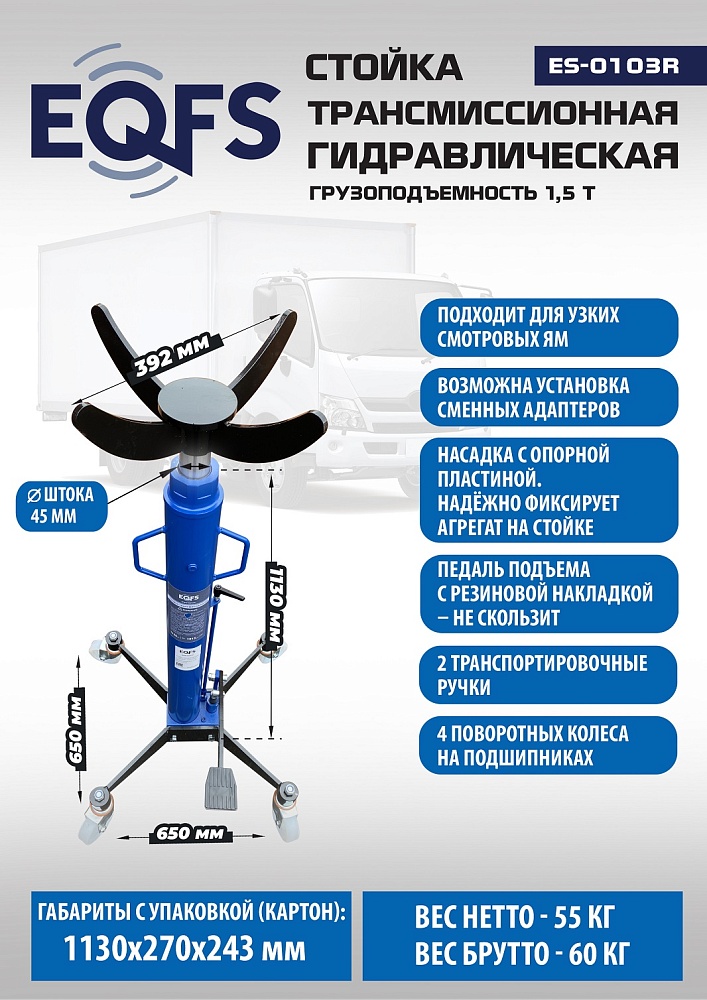 ES-0103R Стойка трансмиссионная гидравлическая 1,5т купить в Красноярске цена ✅ - Все для СТО
