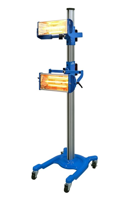Мобильная установка Trommelberg IR2L Standard с 2 кассетами и излучателями в области коротковолнового инфракрасного диапазона для высушивания двухкомпонентных лакокрасочных и подготовительных материалов в процессе ремонта автомобильных покрытий. Благодаря использованию коротковолнового ИК-диапазона достигается полное высыхание материалов за более короткое время. Использование ИК-высушивания материалов, особенно в процессе точечного ремонта, обеспечивает существенную экономию ресурсов и значительно ускоряет процедуру ремонта как на этапе подготовки, так и на этапе сушки финишного покрытия.