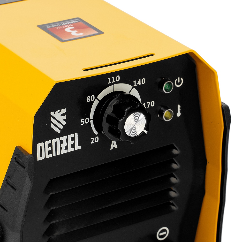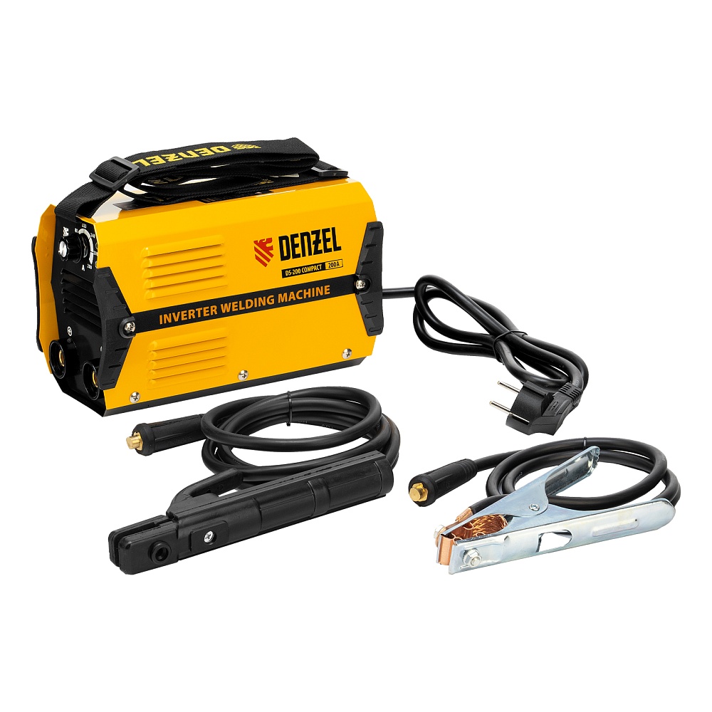 <p>Инверторный аппарат дуговой сварки Denzel DS-200 Compact 94373 с максимальной силой тока 200 А имеет продолжительность включения 70% и работает с электродами диаметром 1,6-5 мм. Используется для сварки стальных металлоконструкций, будет полезен в мастерской, гараже или на даче. При отсутствии розетки его можно подключить к генератору. Аппарат прост в эксплуатации и подойдет как профессионалу, так и начинающему мастеру. Способен работать даже при низком входном напряжении 150 В, имеет высокий показатель продолжительности включения 70% и быстро остывает, что увеличивает скорость и эффективность сварки. </p><h2>Преимущества</h2><ul><li>Плавная и точная настройка — при помощи поворотного регулятора можно изменять величину сварочного тока для работы с электродами разного диаметра.</li><li>Быстрый старт — легкий поджиг (Hot Start) помогает зажечь дугу и повышает стабильность ее горения.</li><li>Высокое качество сварки — форсаж дуги (Arc Force) предупреждает ее обрыв в процессе работы.</li><li>Антизалипание электрода — функция Anti Stick позволяет легко отделить электрод от металла, не повредив обмазку.</li><li>Защита силовых компонентов (IGBT Shield) — аппарат автоматически отключается при перегрузке или коротком замыкании, предотвращая повреждение элементов платы.</li><li>Надежность — плата покрыта лаком, защищающим ее от пыли, а изоляционная пластина исключает возможность пробоя между радиатором и корпусом.</li><li>Устойчивость к внешним воздействиям — устройство имеет степень защиты IP21 и не боится проникновения капель воды и мелких предметов.</li><li>Низкий уровень шума — система Smart Fan автоматически отключает вентилятор при температуре силовых компонентов ниже 40 градусов и простое в течение 4 минут.</li><li>Улучшенное охлаждение — направляющая пластина обеспечивает эффективную вентиляцию, что способствует стабильному функционированию аппарата.</li><li>Качественный кабель питания — мягкий сетевой шнур длиной 1,5 м с PVC изоляцией не дубеет на морозе.</li><li>Комфортная работа — изделие весит всего 3,9 кг и комплектуется плечевым ремнем, поэтому его удобно перемещать.</li><li>Подтвержденное качество — гарантия на заводской брак действует 3 года.</li></ul>