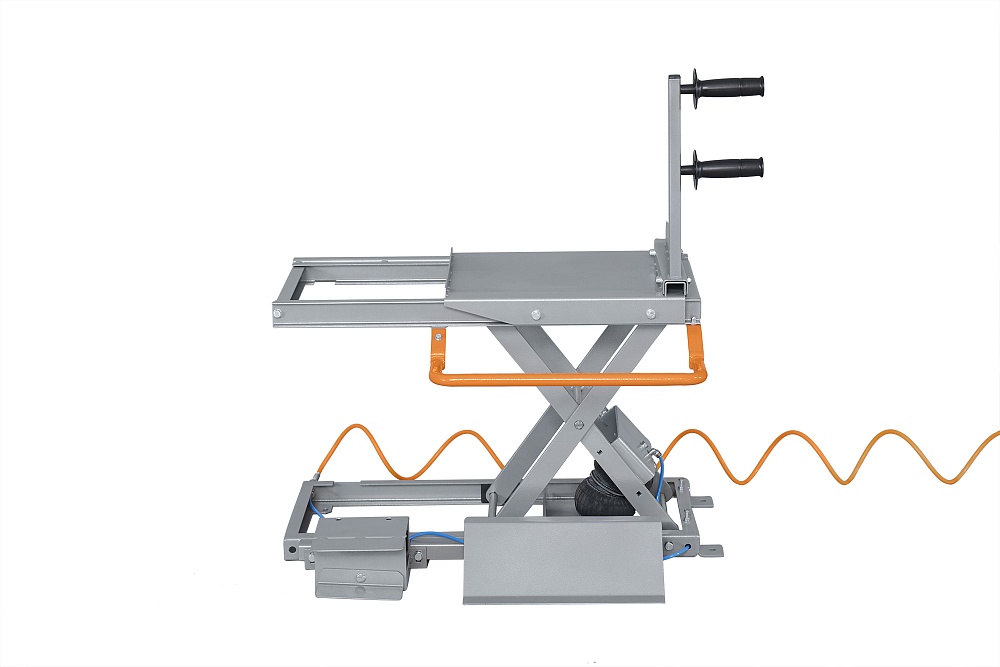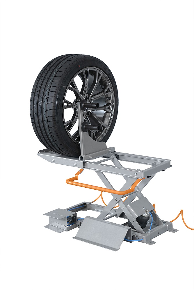 Пневматический подъёмник предназначен для подъёма колёс с целью упрощения их установки на вал балансировочного стенда.