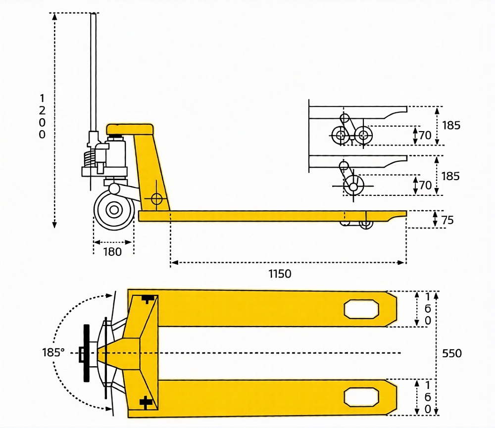 Высота подъема вил 185 мм