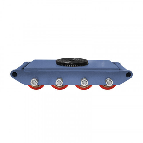 Большая площадь опоры исключает повреждение поверхности пола. Прочная рама не подвержена деформациям. Механизм поворота позволяет легко разворачивать на 360 градусов любой груз. Максимальная грузоподъемность модели — 12 т, количество роликов — 8 шт.
