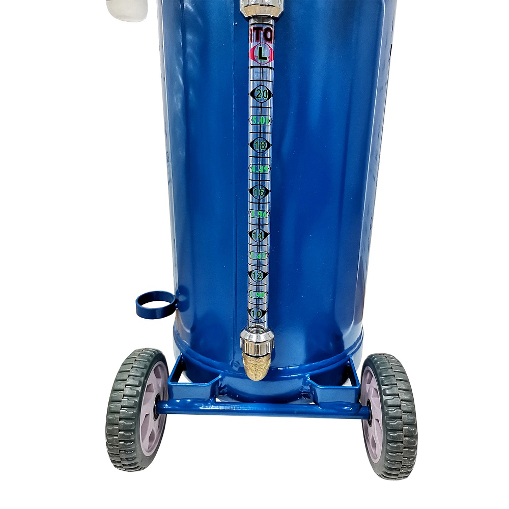 Комплект для раздачи HG-32026 представляет собой резервуар емкостью 30 литров на колесах с воронкой для раздачи из бочки или другой тары и ручным насосом для заправки маслом двигателя автомобиля.