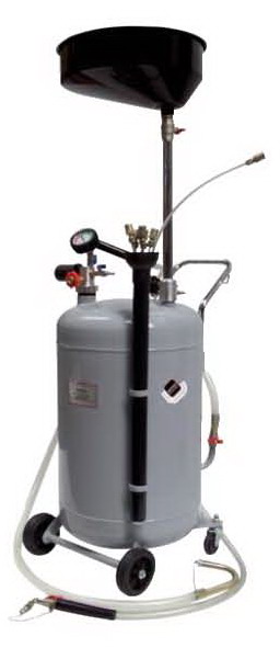 Объем емкости составляет 80 литров. Такой объем позволяет провести обслуживание большего количества автомобилей, в отличие от аналогичных установок других марок. Регулируемая по высоте приемная ванна с уклоном, объемом 18 литров, имеет сетчатый фильтр для удержания сливных пробок и фильтров. У основания приемной ванны расположен шаровый кран, перекрывающий слив жидкости в основную емкость до контроля ее состояния. Процедура откачки технических жидкостей через щупы основана на принципе вакуумирования, при котором создается разряжение и жидкость засасывается в емкость, и используется в тех случаях, когда слив невозможен. В комплекте с установкой поставляется набор из 6 щупов различной длины и материала. Индикатор уровня, расположенный на емкости, показывает ее наполненность и вовремя сигнализирует о необходимости опустошения. Для слива жидкости из установки необходимо подключить сжатый воздух к штуцеру, расположенному в верхней части емкости. Под давлением вся жидкость выливается через гибкий шланг с жестким наконечником в емкость большего объема и затем утилизируется. Давление воздуха контролируется по манометру. Для безопасности на корпусе установлен клапан избыточно давления, который предохраняет стенки от деформации и разрушения.