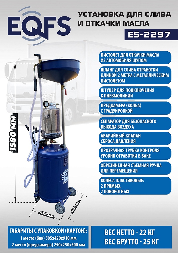 ES-2297 Установка для слива отработанного масла купить в Красноярске цена ✅ - Все для СТО