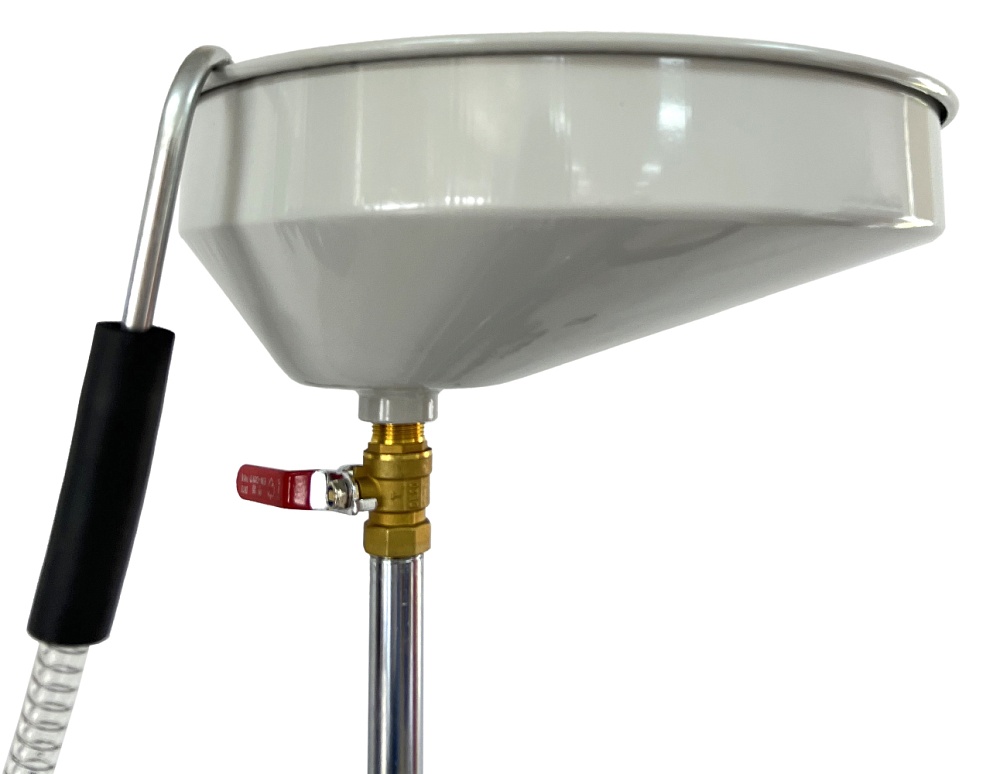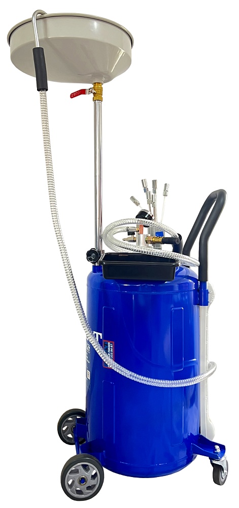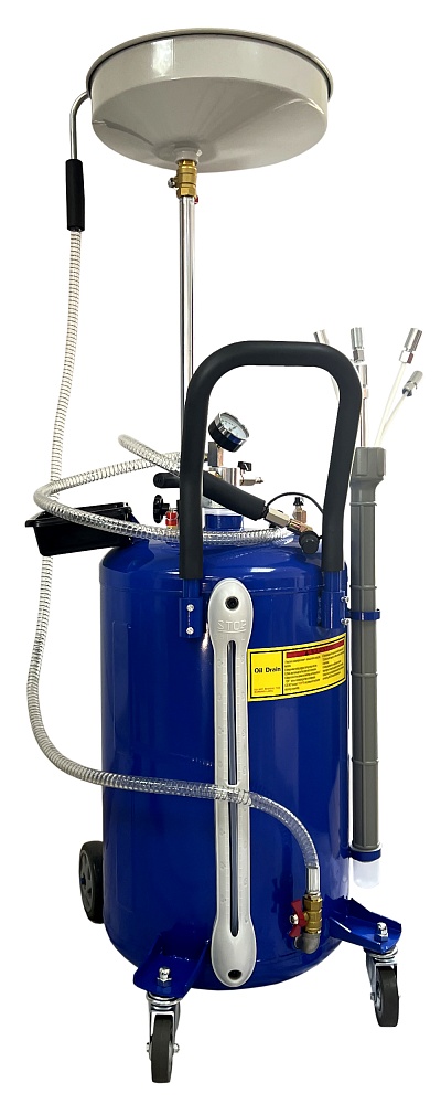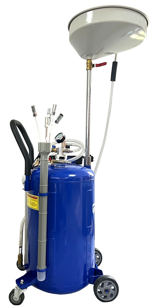 Мобильная установка для сбора отработанного масла с воронкой. Возможен слив в подъемную ванну или откачка через отверстие для щупа.