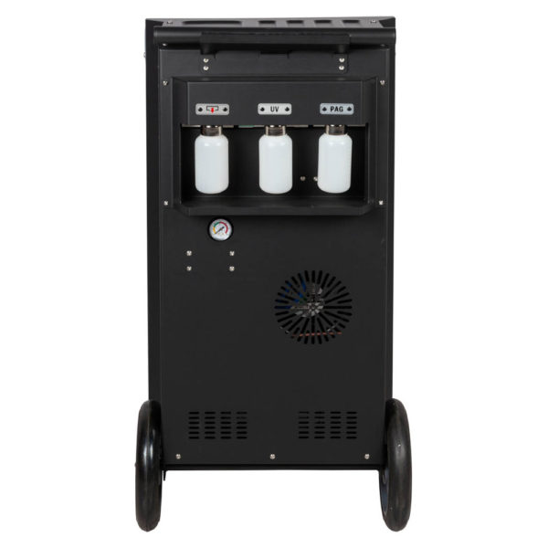 Установка позволяет проводить все операции, необходимые для обслуживания автомобильных кондиционеров. Двухступенчатый вакуумный насос увеличенной производительности. Большая внутренняя ёмкость для хладагента позволяет работать с системами кондиционирования коммерческого транспорта, требующими большого объема заправки фреона.