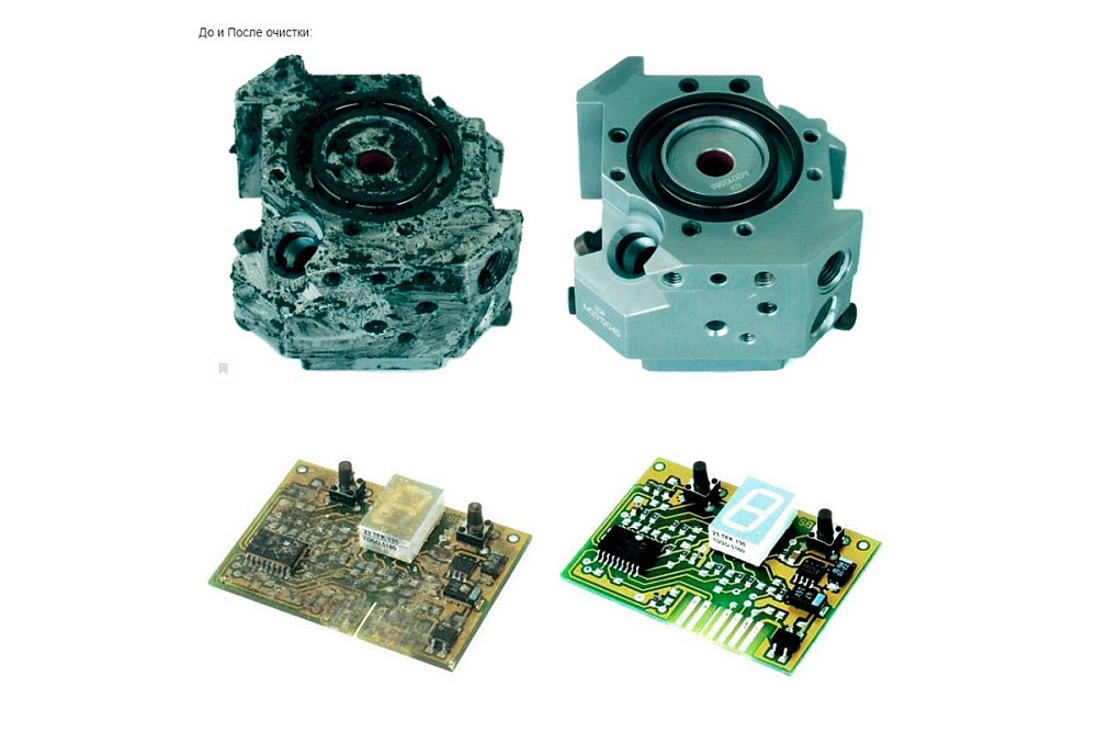 Качественная и безопасная очистка без сколов, царапин и других механических повреждений поверхностей. Удаление отложений (в том числе нефтепродуктов) с форсунок осуществляется без использования агрессивных растворителей и кислот.
