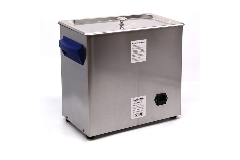 таймером и подогревом, объемом 6 литра. Применяется для очистки ультразвуком маслянистых, смолистых, жировых и карбоновых отложений с наружных и внутренних поверхностей топливных форсунок. Оптимальный эффект заключается в быстром и полном растворении отложений в течение 5 - 15 мин.