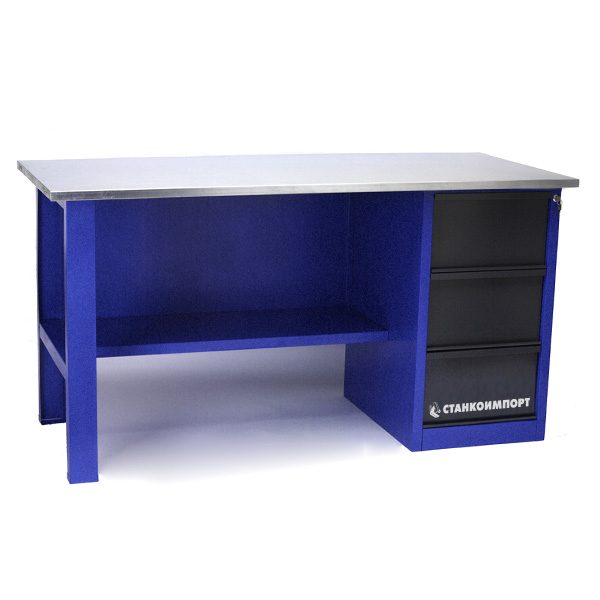 Стол для слесарных работ 1600 мм однотумбовый с 3-мя ящиками без экрана