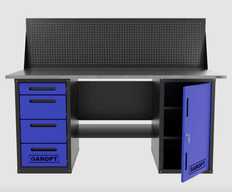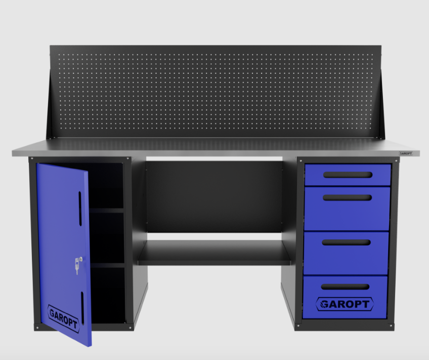 Верстак двухтумбовый дверь/4 ящиков с экраном, синий 1800*700 Garopt, GT1800DY4PP.blue