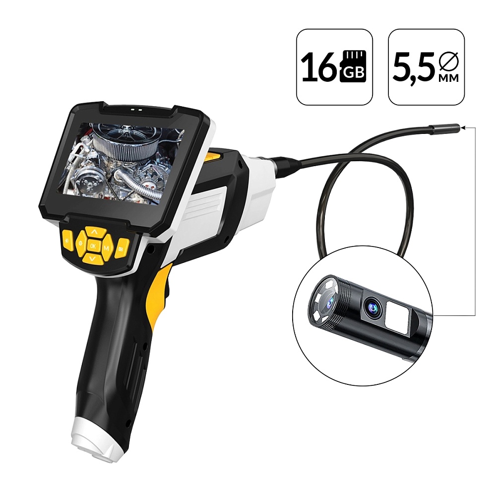Видеоэндоскоп производит запись фото и видео на карту памяти  (не входит в комплект). Файлы сохраняются в высоком разрешении, что позволяет разглядеть мельчайшие повреждения исследуемых узлов на большом экране.