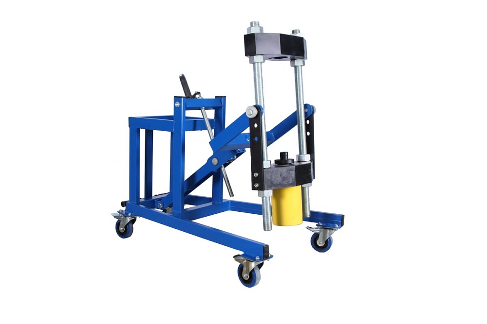 себя гидравлический мобильный пресс для выпрессовки шкворней грузовых автомобилей. Оборудование оснащено подъемно поворотным механизмом, с помощью которого пресс помещается в любое необходимое положение. Сфера применения весьма обширна, подходит к большинству известных марок грузовых автомобилей, таких как КаМАЗ, ГАЗ, ЗИЛ, МАЗ, IKARUS, ЛИАЗ, MAN, MERCEDES, SСANIA, VOLVO, Корейские и Китайские автомобили со шкворнем, максимальный диаметр которого 60 мм.