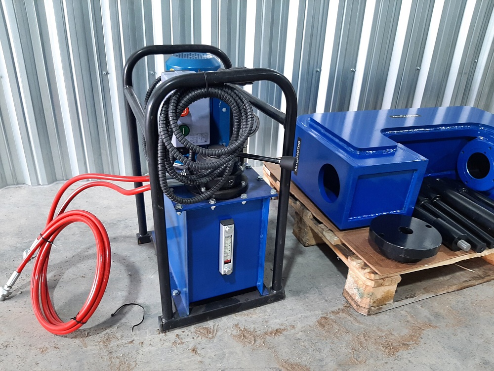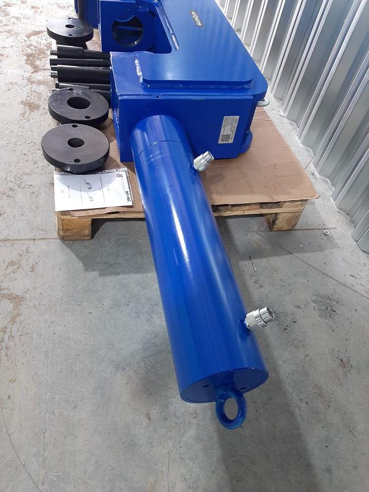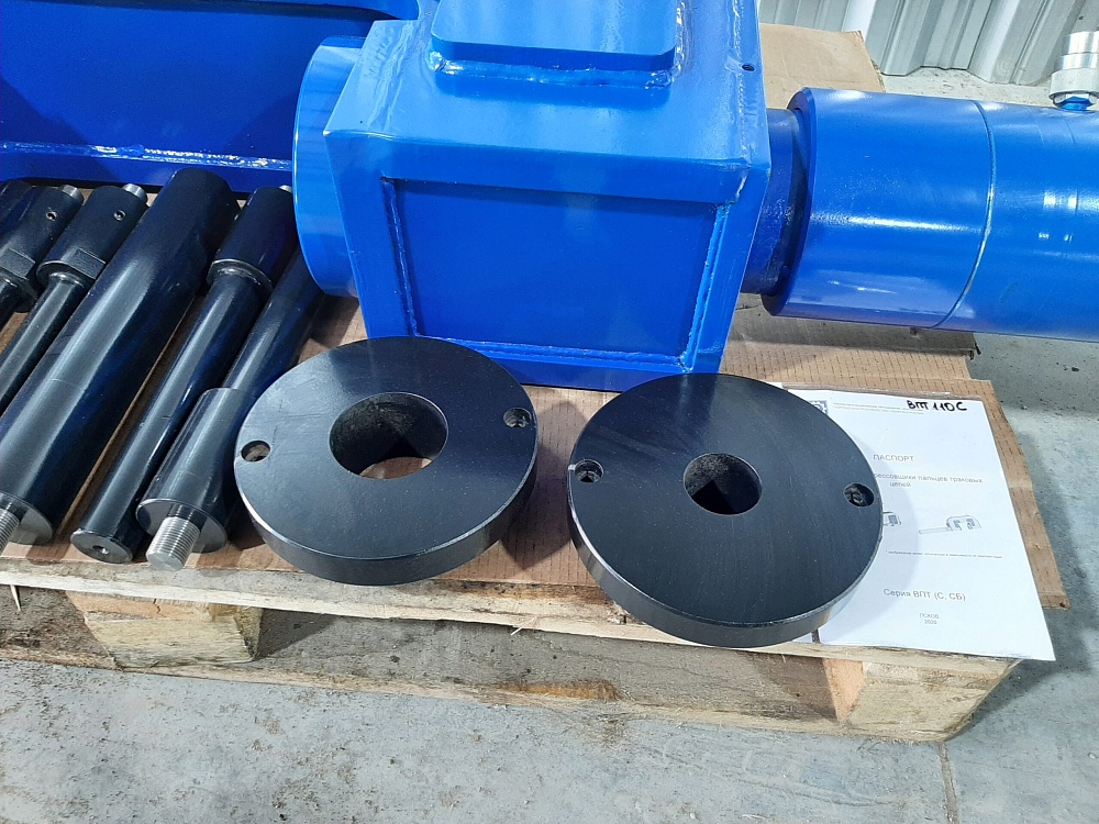 С-образный выпрессовщик пальцев траковых цепей без башмаков ВПТ110С (110 тонн) представляет собой специализированное оборудование для замены изношенных пальцев, втулок, уплотнений гусеничных техники. Данная модификация используется для замены пальцев, втулок в цепях без башмаков! Выпрессовка и запрессовка пальцев траковых цепей (гусениц), замена гусениц. Выпрессовка втулок стрел, рукоятей, мостов, аутригеров Другие работы по монтажу и демонтажу запрессованных элементов техники. Модель ВПТ110С предназначена для выпрессовки/запрессовки пальцев с диаметром до 80мм и длиной до 350мм. Преимущества: Возможность применения на различных видах техники, Снижение трудоемкости процесса, Выпрессовка без механического повреждения деталей, Существенное увеличение ресурса ходовой части. Примечание: Для изготовления выпрессовщика по Вашим размерам необходимо написать нам на почту info@vsedlyasto.ru Коплектация: пуансоны д.45*200мм, д.45 *100мм, д.45*30мм, д.30мм*200мм, д.30*100мм направляющие под пуансоны д.45 и д.30мм В комплект С-образного выпрессовщика пальцев траковых цепей ВПТ110С насос не входит. Опционально можно заказать ручной, пневматический, электрический насосы. Опции: ручной пневматический электрический насосы Усилие - 110т Ход штока - 300мм Масса - 220кг Давление в гидросистеме - 700бар Габариты рабочей зоны (ширина/расстояние от оси штока до низа скобы) - 350/80мм