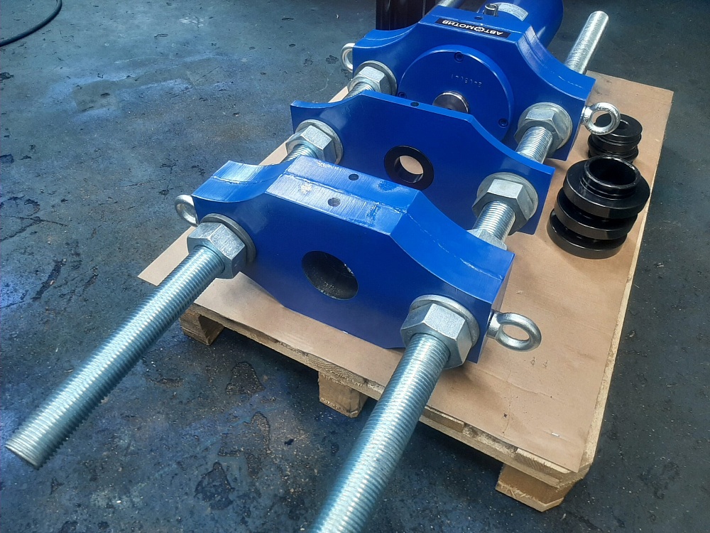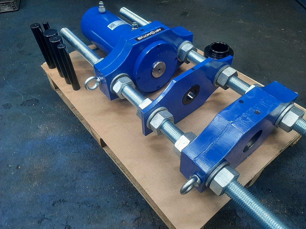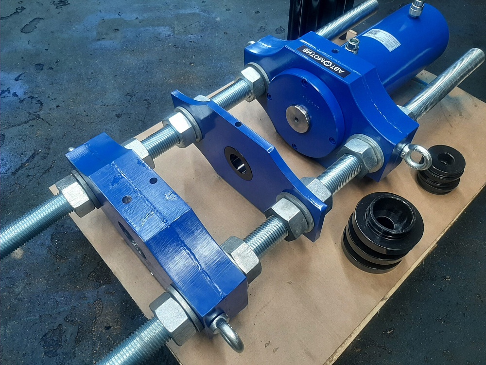Съёмник шкворней для грузовых авто 100 тонн ( с пневмогидравлическоким насосом в комплекте) расстояние между шпильками 300 мм.