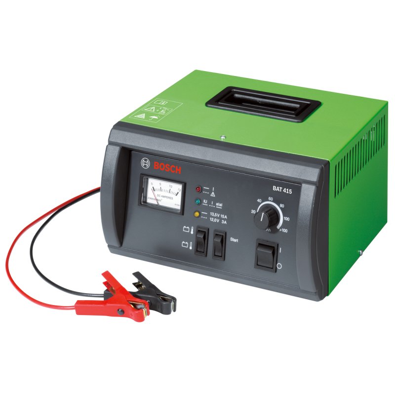BOSCH BAT 415 - Зарядное устройство для АКБ 12В, прочное и компактное, с высокочастотным преобразователем энергии, прекрасно подходит для зарядки как традиционных батарей, так и батарей с нетекучим электролитом. Обеспечивает бережное восстановление энергии в АКБ и продлевает срок ее службы благодаря качественной и оптимизированной работе процессора.Функции фильтрации и защиты позволяют производить зарядку абсолютно безопасно для бортовой электроники.
